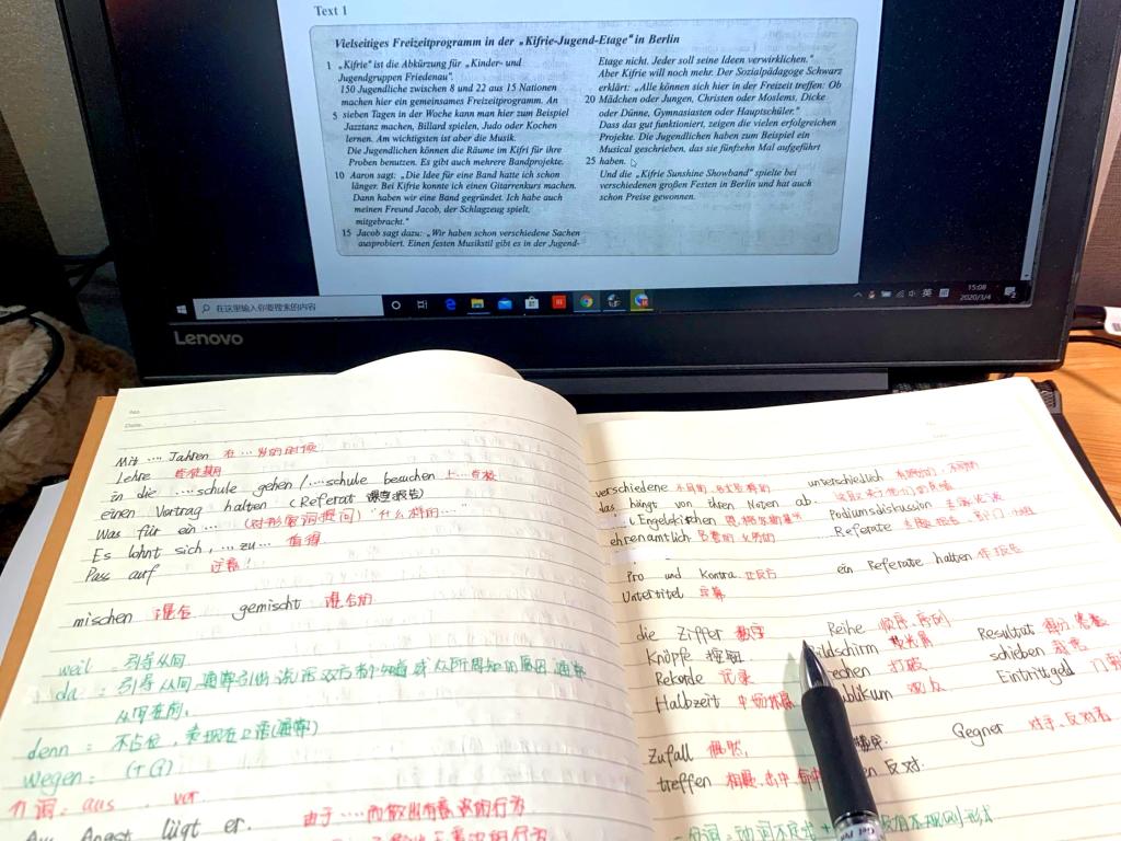 暖暖三月天,停课不停学。中德学院师生们开始在线授课和学习已有两星期。万事开头难,然而经过了最开始的困惑、疲惫,以及种种技术“小状况”,如今大家都已经进入满怀信心和工作热情、学习热情的状态。尤其是2017级出国班的同学们,正珍惜最后的国内学习时光,抓紧提升自己的德语水平。经过共同努力,师生们对在线课程取得一致认同,这也保证了课程顺利、有效地持续进行。