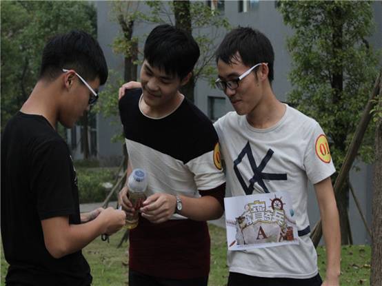 关卡一二是“叠纸杯”和“夹乒乓球”,深藏的花果山活动地点让不少不熟悉校园的挑战者们在花果山上兜兜转转。很多组队伍的挑战者在选择上山还是下山,往左还是往右产生了分歧。寻找宝藏的路不会是一帆风顺的,唯有冷静团结、互帮互助,才能一起寻觅到正确的地点。当有的挑战者还不知所措找不到地点的时候,找到地点完成挑战的队伍主动给他们指路。此时,他们不是比赛中的竞争者,而是探险中的小伙伴,没有你我输赢之分。在绝望得即将放弃的挑战者突然找到活动地点,笑容取代了阴霾,意外中的惊喜让挑战者体会到了不一样的乐趣。坚持下去,不放弃的探索,总会有惊喜在最后等着你。