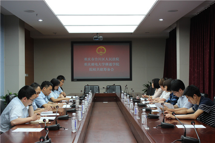 为使合作顺利进行,双方于2017年5月24日下午四点半,在合川区人民法院第一会议室召开了“院校共建法制教育实践基地筹备会”,共同商讨合作方式和途径,并就合作协议相关内容进行了深入的探讨和交流。合川区人民法院唐玉宽副院长、政治处叶斌主任、审管办、院团委、研究室和宣讲团等部门领导出席了本次筹备会。重庆邮电大学移通学院思政教学部邓燕主任、德育教研室主任陈建以及德育教研室的相关老师作为院方代表出席了本次筹备会。