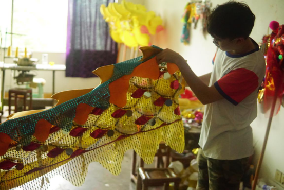 图为作坊里制作出来的漂亮的龙脊(布料缝制,手工缝制加工)