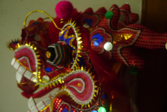 图为布做龙脊,龙脊的制作仍然还是采用缝纫的技术将彩饰固定在布上,经过缝纫成为漂亮的龙脊