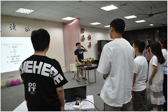 武尧老师也是来自于通识教学部的老师,他主要分享了美声唱法的基础运用。记得有一位名师说过,人生中有很多事情可以不做,但有两件事情非常重要,一是阅读,二是音乐。阅读能让你有丰富的知识,开阔的视野,提升你的人生阅历,生活品味。而音乐则是生活中不可或缺的调味剂,是生活中的一股清泉,是陶治性情的熔炉;音乐改善人的性情,带走的是寂寞。武老师从概念到演练,分别介绍了什么叫美声,怎么唱出美声,进行现场演示,和同学们互动起来,现场氛围异常活跃。