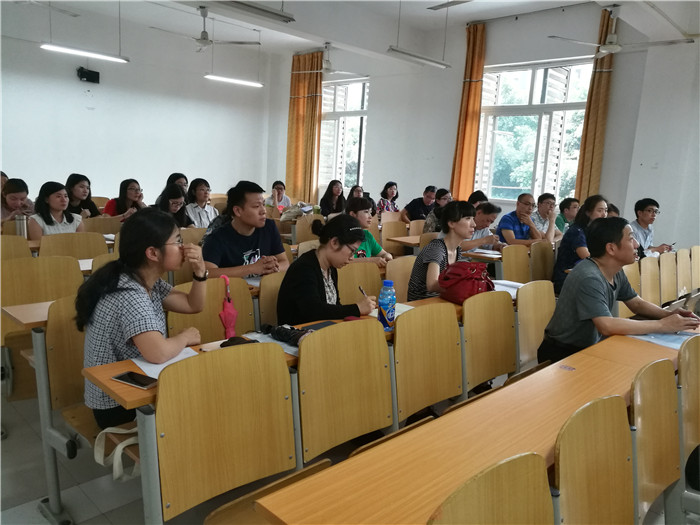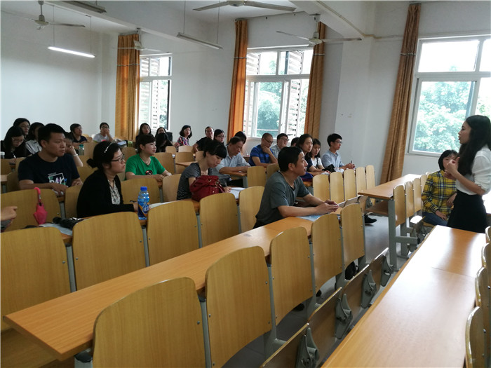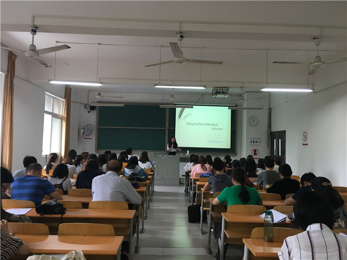 5月30日下午4点,外语系在1201教室举行了德语公开课研讨活动,由新进德语老师胡雨主讲《德国文学》课程,目标学生为德语系大三学生。外语系全体教师参加。
