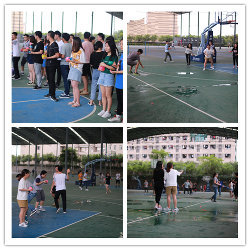 欢呼声最高的“水球大战”开始了,一个个孩子们用比赛得来的“水球”向对手们发起了猛烈的“攻击”,比赛氛围也达到了最高潮。各队战术的商讨:如何利用手中有限的子弹去“重创”对手、派出诱饵吸引“火力”、派出间谍等,有一种两军对垒的气势。浸透的衣服没有减弱同学们的热情,反而却挫越勇,迎难之上,这种精神不就是我们一直在坚持的信念吗!