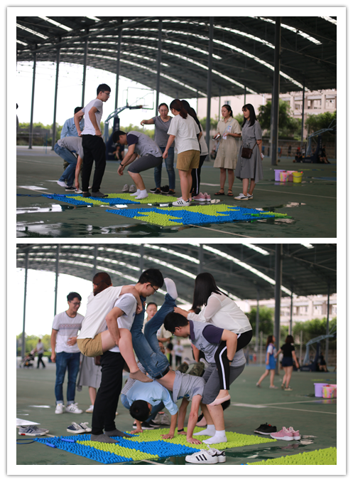 “接力搭建渡河桥”主要锻炼了同学们的四肢协调能力和大局统筹能力,在讨论协作和团体行动中,同学们不仅可以拉近距离消除隔膜,更是同时锻炼了脑和身体的协调能力,做到动作跟上大脑的思维,大脑反馈行动的部署。