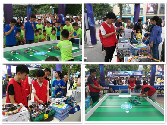 三江之城,科技合川;一个大赛,一次逐梦之旅;有着小小合川少年的卓越表现,也有志愿者的无私奉献。2018年5月27日,“重百杯”合川区首届机器人大赛暨2018世界机器人大赛合川赛区选拔赛在重百合川商场大门口塔尔门广场精彩开启。本次比赛由合川区教委、科委、科协、团委主办,合川区少年科技辅导员协会、合川区青少年机器人培训中心、重庆邮电大学移通学院协办,来自七个小学的47支队伍作为参赛者参加到本次比赛中,比赛内容涉及机器人组装,机器人编程以及机器人足球赛等多个项目,参赛师生共计500余人。