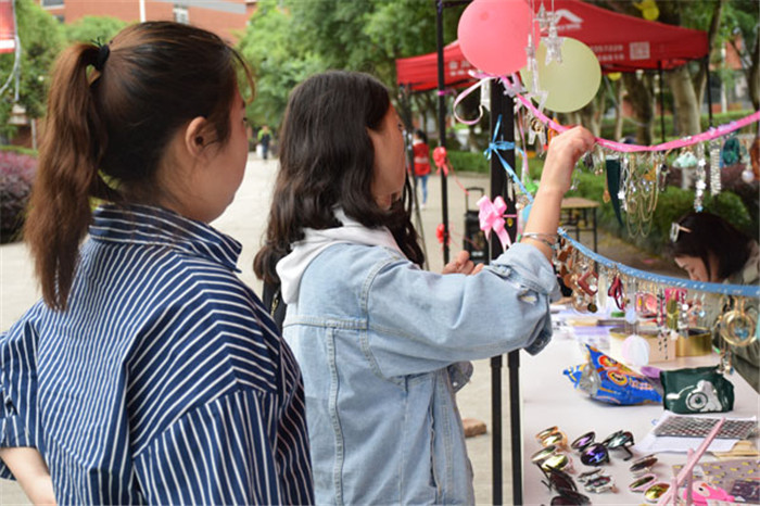 活动现场,各摊位上都摆放着琳琅满目的待售物品,从书籍、字画等文化用品,到服装配饰、手链、耳饰等种类齐全,有珍藏了多年的书籍,有骑了四年的自行车,也有陪伴了青春岁月的生活品……物美价廉的物品吸引了广大师生前来“扫货”,活动现场人气爆棚。他们的全身投入,让现场气氛更为活跃,也让初夏的街道俨然成为一片欢乐的海洋。在这一买一卖之间,他们的大学生涯也到此终结。
