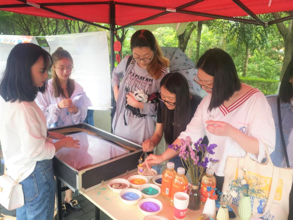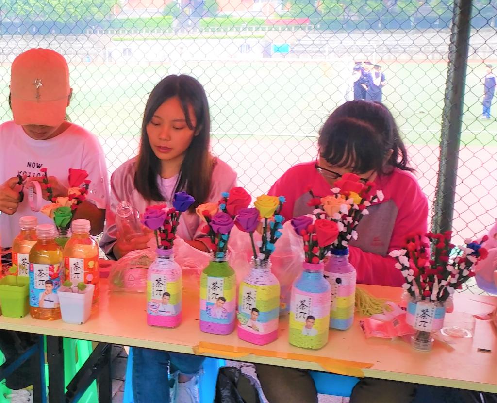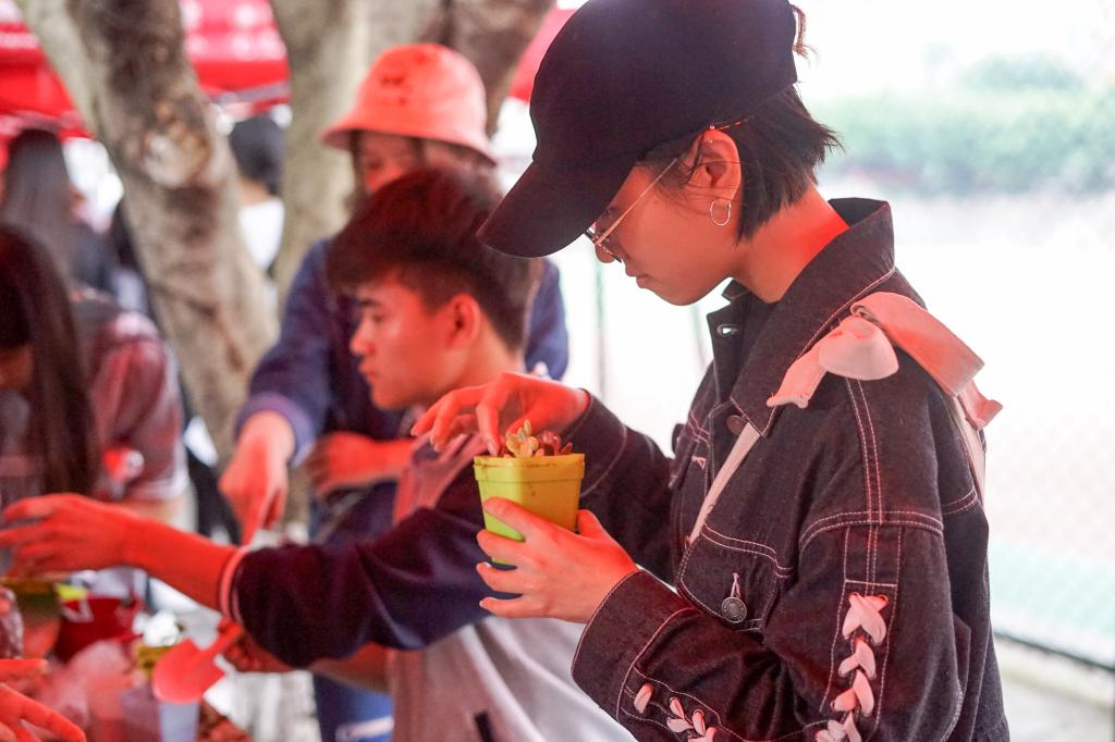 让生活多一点创意,多一点“绿色”。本活动专区以“绿色”环保为主题,联合DIY手工协会举办“饮料瓶换多肉”活动。同学们用饮料瓶便可换取一次多肉种植体验的机会。活动现场提供了花盆、土壤及各种种植工具,种植多肉结束即可带回寝室。同时,DIY手工协会的社员在现场利用回收的饮料瓶制作了许多十分精美的花瓶,引得路人围观。