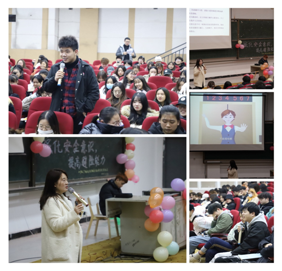 陈老师不仅从理论上向大家传授消防安全知识,并且通过师生互动环节,让同学们提出自己在校园生活或日常生活中发现的安全问题。同时经过提问的形式,引导同学们学习了解火灾来临时该如何应对。