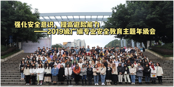 为强化2019级广播电视编导专业全体学生的安全意识,提高自我保护能力及避险能力,创建平安校园。11月24日中午12:00,艺术传媒学院辅导员陈婷婷老师在第三教学楼3302教室开展了一次面向2019级广编学生的安全教育主题年级会。