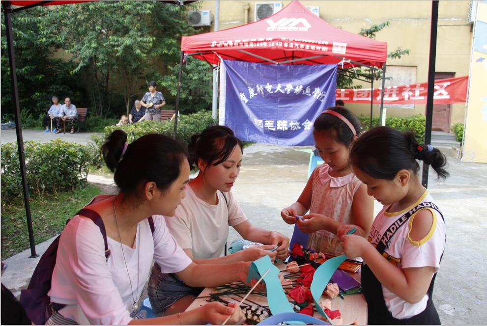 虽然天气炎热,我们的热情却是越发高涨,同学们带领小朋友们玩转游戏,工作人员细心为居民介绍游戏规则,手把手教学,DIY协会用手编织爱心,我们将欢声带进社区,笑语温暖丽景。