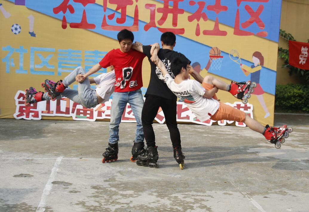 到了下午四点,干事们和社员们搬着此次活动所需要的物资,一路欢声笑语的来到了丽景水岸小区,到达小区后随即便开始布置舞台等活动场所。在大家的努力下,很快活动现场就被搭建出来。17:00主持人宣布活动正式开始,首先由PST轮滑社带来的炫酷惊人的轮滑表演,然后上场的武道协会也带来了精彩的武道表演。应接不暇的精彩表演引来了在场的居民的一阵阵掌声与喝彩。