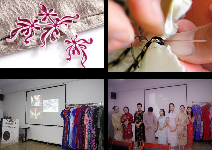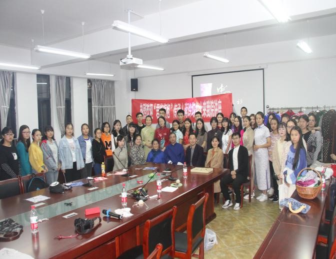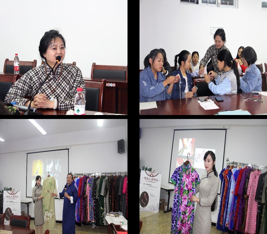 10月12日下午4时,“传承人讲传承”学术沙龙活动在艺术楼一楼会议室如期举行,这次活动我们邀请到了君临旗袍的第三代传承人蒋玲均女士来和我们分享旗袍的相关知识及制作工艺。同时,第二代传承人王学碧、第四代传承人张玉梅以及君临旗袍的画家莅临了我们活动。
