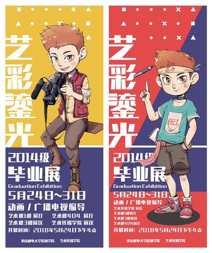五月,夏意渐浓,一年一度的毕业季也在此时拉开帷幕,时光绕指渐行,岁月的风华注定在离别的五月惹出风采。迎来送往是高校纳新吐哺、培育人才的必由之路。在纷繁的五月,艺术传媒学院即将送走2014届毕业生,为进一步检验毕业生四年所学,丰富毕业季校园生活。广播电视编导教研室、动画教研室共同举办了以“异彩鎏光”为主题的毕业作品展,意在凸出两个专业的各自风格特色与精彩风貌,在流光幻影中感受炫彩魅惑。毕业展正式定于2018年5月24日下午16点,在艺术楼4楼先锋剧场开幕。