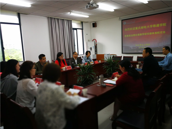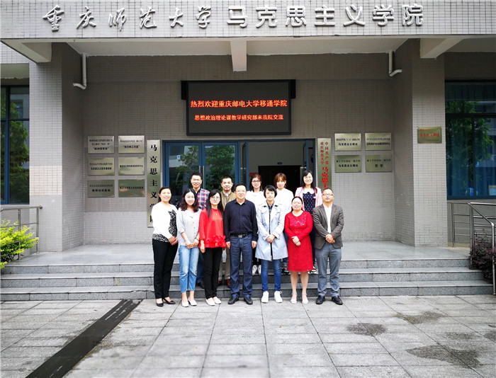 为推动我校思想政治理论课建设创新,深化我校思想政治理论课教学改革。2018年5月11日上午,思政教学部主任邓燕带领思政教学部8位专职教师赴重庆师范大学马克思主义学院,就思想政治理论课程建设、思想政治理论课教学改革以及思想政治理论课新教材的运用等问题进行了深入的交流与探讨。重庆师范大学马克思主义学院院长陈洪、副院长况明安、党委副书记姜土生,以及思想政治理论课教研室主任孔庆茵参加了本次交流。