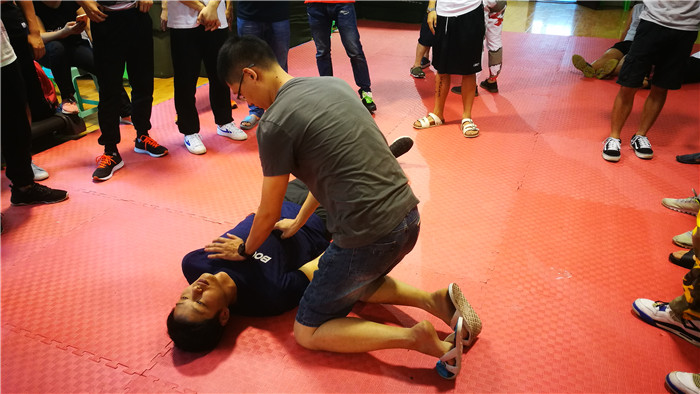 13日上午的教学内容是心肺复苏,共计七个步骤,全程不能有丝毫的顺序和操作错误,队员们看得聚精会神,在实际的操作中也非常认真,反复练习。因为心肺复苏的成败也直接关乎到能否成功挽救溺水者的生命。