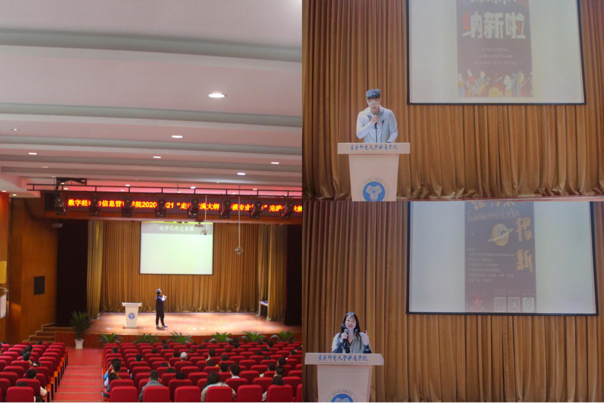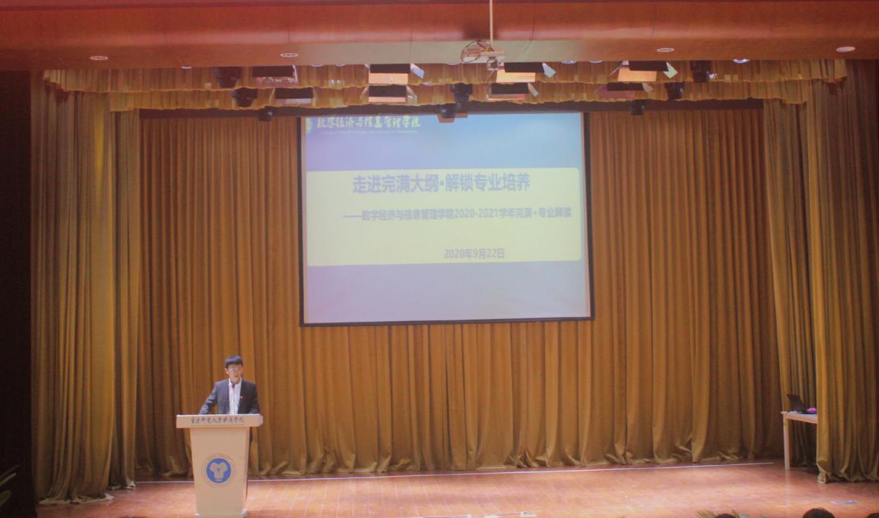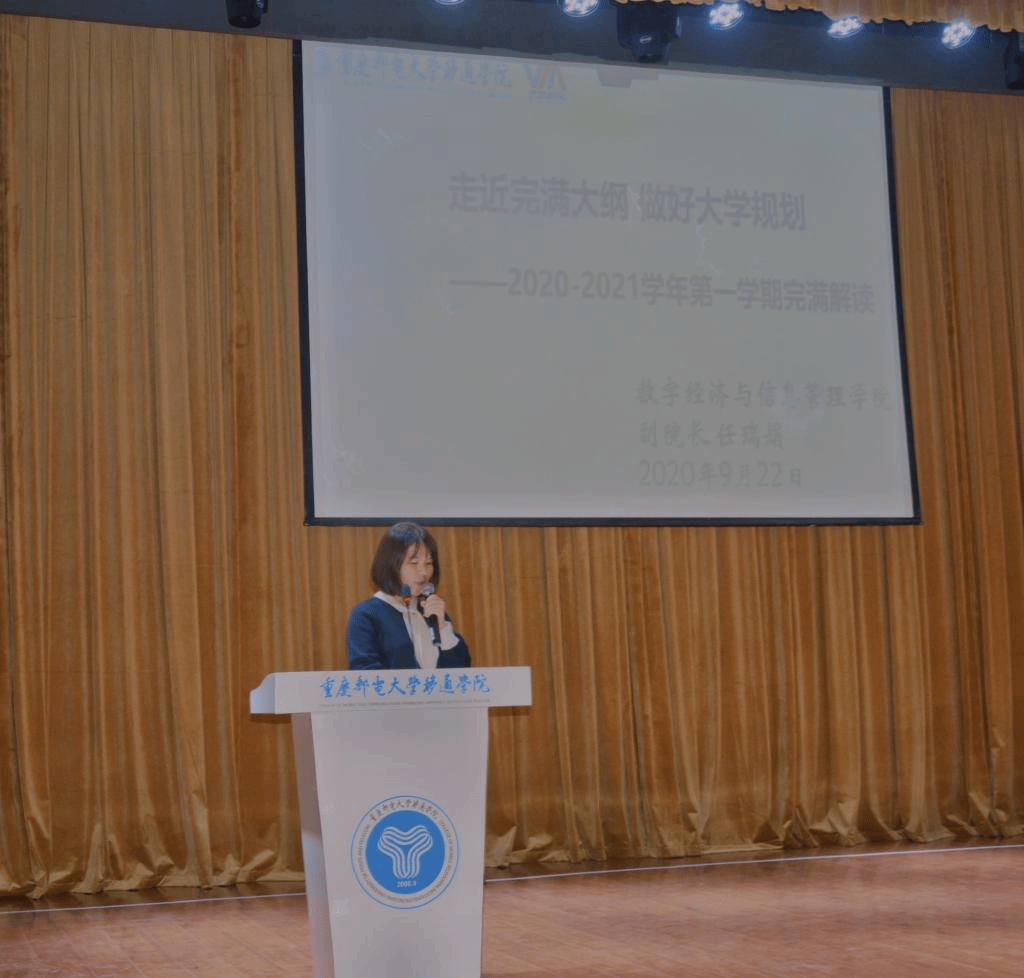 时光的列车满载新生力量停在了移通门口,车厢里每个人心怀理想,筑梦韶华。我们享受生活,我们追求幸福,为让2020级新生对大学生活有更深刻地探索,更透彻的了解,我院于9月22日下午15时在下里巴人剧院召开了“走近完满大纲,解锁专业培养”完满+专业解读教育教育。本次会议邀请到数字经济与信息管理学院党总支书记、院长潘显兵教授、学工副院长任瑞娟老师、学生工作办公室主任兼团总支书记廖阳老师、信息管理教研室主任王哲老师、工程管理教研室骨干教师乔兴刚老师、资产评估专业骨干教师冉叶虹老师以及2020级辅导员蒋兵老师和彭薇薇老师等为2020级新生答疑解惑,希望能够帮助他们了解对学院各个架构、板块等的认识;另外为了让完满教育解读更为鲜活具体,我院还邀请了竞技体育中心颜文娟老师,高川老师,校排球队队长徐腾飞学长、啦啦操排舞老师王尚傲老师,以及twinkle啦啦操队长赖丽萍学姐、城市化研究生班董一帆学长作为嘉宾来到现场进行学长学姐有话说,给有兴趣的新生们提供便捷的平台,助力打开大学新生活的大门。
