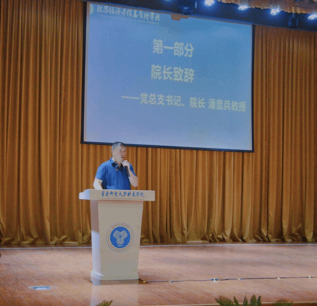 鲜活的青春气息热闹了会场,会议在院长潘显兵教授的致辞中拉开帷幕,潘院长首先让2020级新生思考两个问题:1、到大学来做什么? 2、毕业后要做什么样的人?随后院长以两点希望寄语厚望:希望2020级全体新生有“风雨兼程”的思想准备,大学不是高考胜利后的俱乐部,而是人生旅程的“加油站”和“训练场”。更希望大家有“脚踏实地”的行动,去争取“浓墨重彩”的人生舞台。社会进步需要的是建设者和行动派,未来的发展还得新生们自身努力践行,再漂亮的房子也得由坚固的地基支撑,希望每位小萌新都能找准自己的一方天地,踏实肯干,平地起高楼。