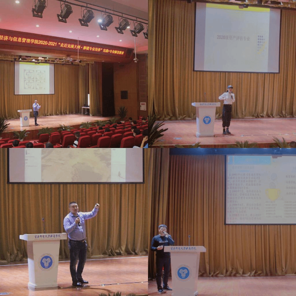 新生最关心的还是专业问题以及就业前景,为让学生透彻了解自己的专业,我院邀请到负责各个相关专业的老师们,信息管理教研室主任王哲老师从专业知识、能力获取、就业方向等方面解读了大数据管理与应用专业和信息管理与信息系统专业,乔兴刚和冉叶虹老师非常热情而生动对工程管理和资产评估专业的理论框架、实习背景、就业方向、学长有话说进行多维度讲解。富贵必从勤苦得,同学须读五车书,要想被社会温柔以待,就得在接受社会的残酷之前做好万全的准备。