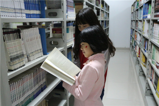 (留守儿童参观校园图书馆)