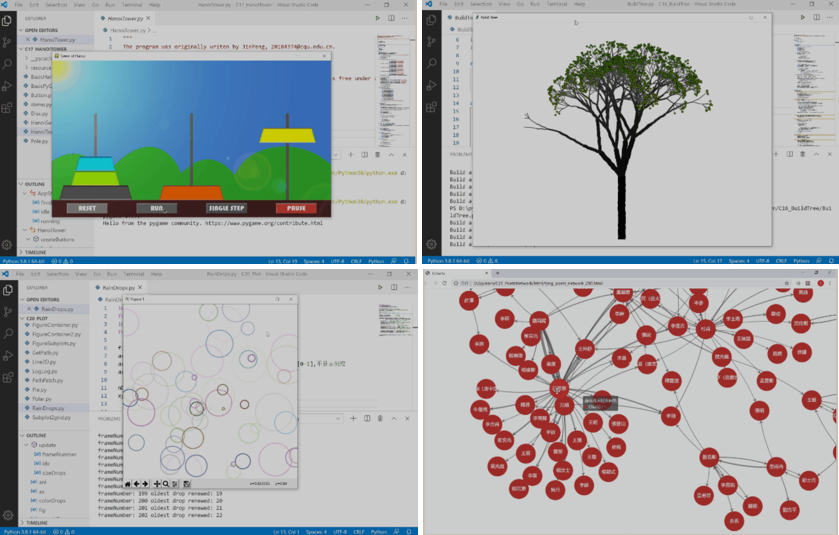 下午,陈老师结合上午的Python语法,着重进行了Python实战及案例讲解。他表示,无论学生的层次如何,一定要在课程里带点算法以及使用算法解决问题的例子给他,并且使运行结果有一个绚丽多彩的呈现方式,这是讲授Python的第一要素。陈老师以其丰富的工程实践经验,深入浅出的分享了面向专业应用的Python课程教学案例,给双体系的软件技术实战课程带来了诸多的参考和指引。