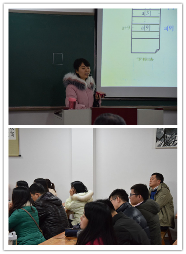 为符合“信息产业商学院”办学定位,在培养技术型人才为基础的情况下,根据教学理念着力打造复合型人才并将学生们塑造成未来社会中坚力量,并对老师教学进行改革,提高学生独立动手能力,主讲人王宁老师依据学生与老师的反馈,选择C语言的数组与指针为示范课的课题,主讲人王宁老师美丽端庄而又年轻,当她开始上课时,全场肃静,即使在最后一排也能清晰地听清王宁老师甜美的声音,在对指针的定义,指针与指针变量的区别等知识进行解释时无一不折射出王宁老师对基础知识了如指掌,而在对于多维数组这类较复杂知识的讲解,王宁老师更是将对C语言知识融汇贯通的优势发挥得淋漓尽致,在座所有学习者既被王宁老师生动的叙述方式所吸引,也对其高度的知识性囊括叹服。