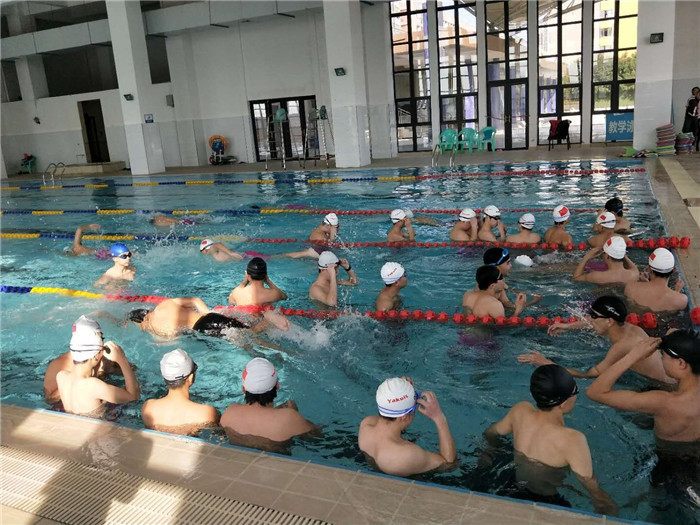 会议结束的第二天便开始了为期三周的恢复训练。队员们仍旧专心致志的进行着训练,按时的到达游泳池,一如既往的准备活动,一切都是有条有理的开展着。虽然是学员们的恢复期,教练们指导我们学习新的泳姿——蛙泳和蝶泳,一边适应一边掌握。