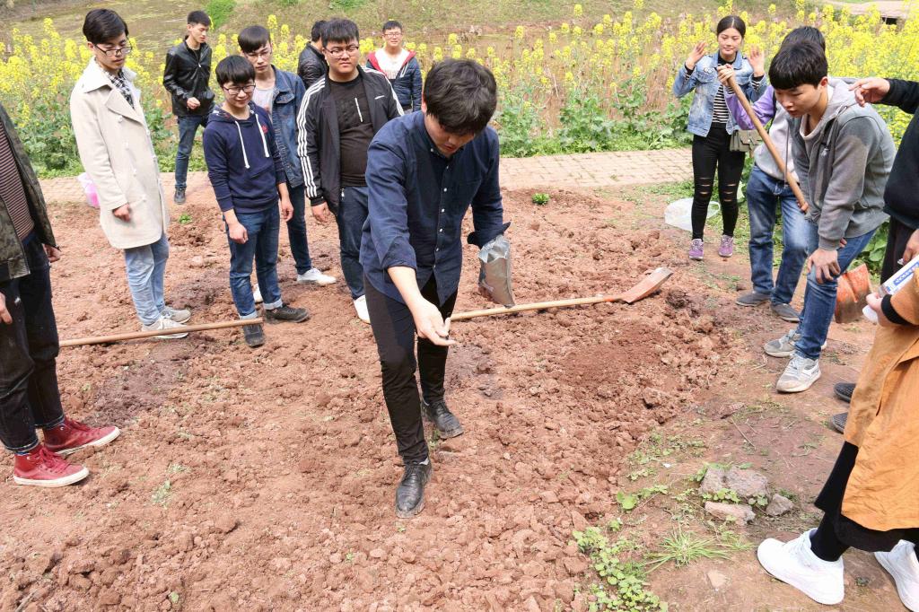 为了让社员们能更好的种植花卉,张社长又详细地讲解了播种的方法,并亲自示范。三位社员排成一条直线,轻轻地踩在已松好的土地上,每一次播种都需严格,以保证美观。由于很多社员都是第一次尝试,些许种子并未顺利进入土坑中,于是撒种之后,张社长又仔细对已经撒过种的地进行补种,确保月亮湾的每一颗种子能更好地生长。任何领域,并非一蹴而就,我们都需要不断去完善,努力臻于完美。
