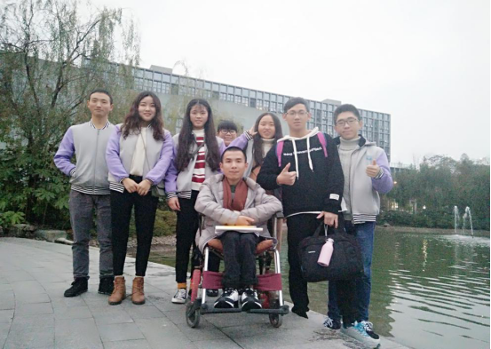 管理工程系信息管理与信息系统02班的朱洪江同学是汪先伍暖心工程的帮扶对象。朱洪江身残志坚,通过自己的不断努力,来到移通。在这里有许多人帮助过他,但汪先伍却是最坚持的那一个,他用自己的行动来证明一切,在每一次对朱洪江同学的志愿帮扶中他都准时准点接送,注意朱洪江的人身安全,每周朱洪江都有一节课在三楼进行,每次他都会将朱洪江同学抬到教室……