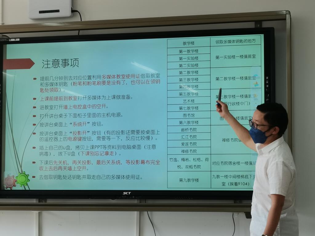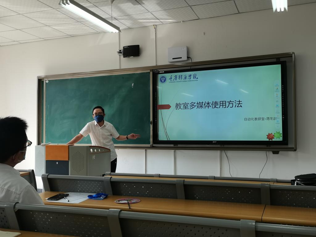 9月13日下午3点10分,自动化教研室蒋冬政老师在竹逸A202为新进教师进行了多媒体使用、上课注意事项培训,使新进老师能够熟练使用学校多媒体教学系统,熟知授课过程中要注意的问题。