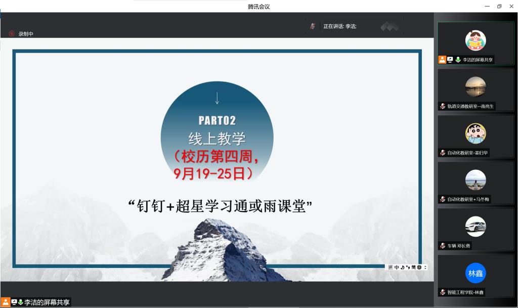 9月5日,智能工程学院利用腾讯会议组织新进教师的教学能力提升培训会,由电气过程及其自动化专业负责人杨佳义主讲。杨老师从明确教学目标、做好课前准备、高效课堂管理和合理应用教学手段四个方面开展了培训。她介绍了学校的人才培养目标、专业人才培养目标和课程组织架构,指导新进教师在教学大纲的基础上明确教学目标,分配教学学时和设计教学内容。同时,解读了学校课程考核管理规定文件,明确课程需要准备的教学材料,并以教学辅助软件学习通为例演示课程过程考核管理的方式,建议新进教师听有经验的教师的整门课程。最后,杨老师为新进教师介绍了优质的教学资源和板书设计、讲练结合、视频动画等行之有效的教育教学手段,助力新进教师的教学能力提升。