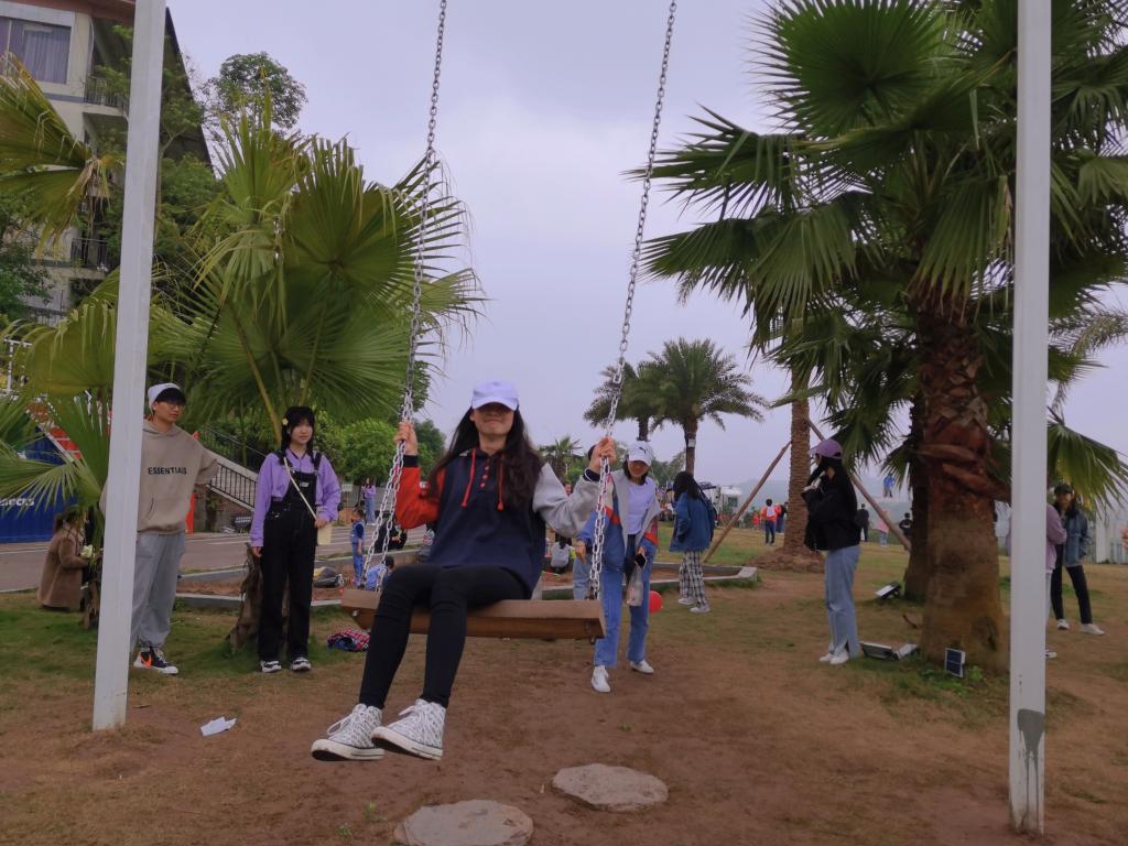 不乏有童心未泯的同学,去与小朋友进行了“谈判”,获得了秋千的短暂使用权。结果坐上去后,还享受了小朋友们的热情对待,秋千推得一下比一下高,与室内课堂的秩序感截然不同。彩色的泡泡一个一个地吹出,飘过草坪,我虽然还没能切身的去想那个问题,但觉得今天这堂课格外有意思。我们没有规划的路线和行程,是随心而发的自由行。不拘泥于形式,真真正正地在感受外面的春天。