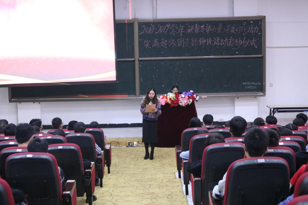 为深度挖掘各团支部的最优潜力值与最大亮点,更好的结合我校完满教育理念,促进共青团团学工作的发展,着力提升团支部的自身建设,创建特色团支部,使团支部积极彰显各自文化风采,特此开展2018—2019学年“凝聚支部力量,迸发时代活力”完满超级团支部评比活动。为使各团支部能更好的了解活动要求,熟知活动流程,积极参与和投入到“完满超级团支部”评比活动中,特于2018年11月2日12时30分,在3203教室举办2018—2019学年“凝聚支部力量,迸发时代活力”完满超级团支部评比活动启动仪式。出席本次启动仪式的嘉宾有各院系副院长、辅导员、以及团委教师,同时,各支部团支书也齐聚一堂,共同见证完满超级团支部评比活动的启动。