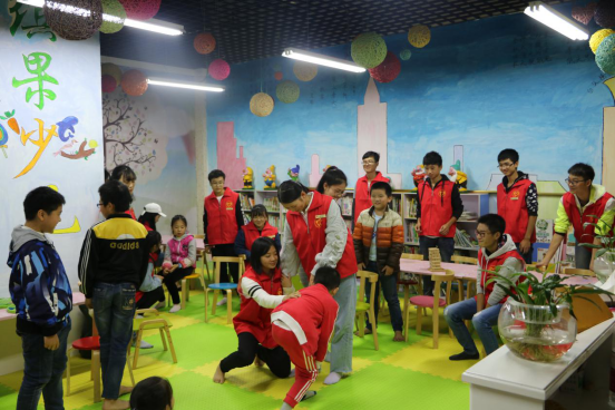 活泼好动的小朋友像生机勃勃的春天,是生命的代名词。完成沙画过后,小朋友们和志愿者们玩起了“爱的抱抱”和“1、2、3木头人”,抱抱的时候,一双一双的小手紧牵着,像连环扣紧锁着,像七条彩虹彼此融合着不分离。“1、2、3木头人”“不许动”使劲憋笑的孩子们乖乖地停住手中的动作,像坚定的石头一动不动。玩着游戏的孩子们是最洒脱的,他们享受着游戏里的快乐,让心张开薄似沙的翅膀,羽翼在悄悄丰满着。