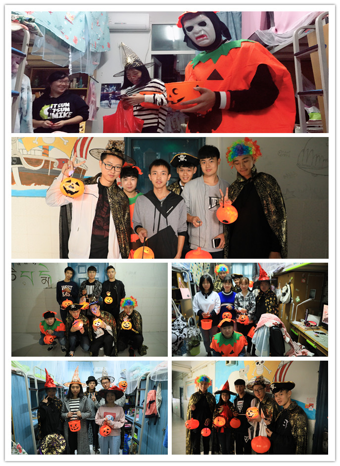 10月31日晚九点半,爱莲书院开展了一场别样的糖果狂欢,C4、C5门口都装扮一新,自治委员会的同学们盛装打扮去各个寝室发糖果,和书院同学共享节日的欢乐。活动前,为了使活动氛围更加浓厚,自治委员会的同学们进行装扮,南瓜人、黑猫、女巫、超人、杰克船长、小丑、灰姑娘等卡通形象,为节日注入了更多的艺术元素,使活动在开始前就掀起了一阵高潮。