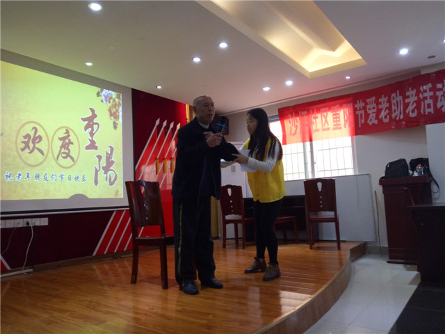 秋叶正红时,又是重阳节;他有登高眺远,我有敬老尊贤。2017年10月27日,重庆邮电大学移通学院外语系与重庆师范大学涉外商贸学院的志愿者们共同为沙坪社区的老人送去重阳节的问候与祝福,为我系与涉外商贸学院合作共建式的志愿服务拉开了序幕。