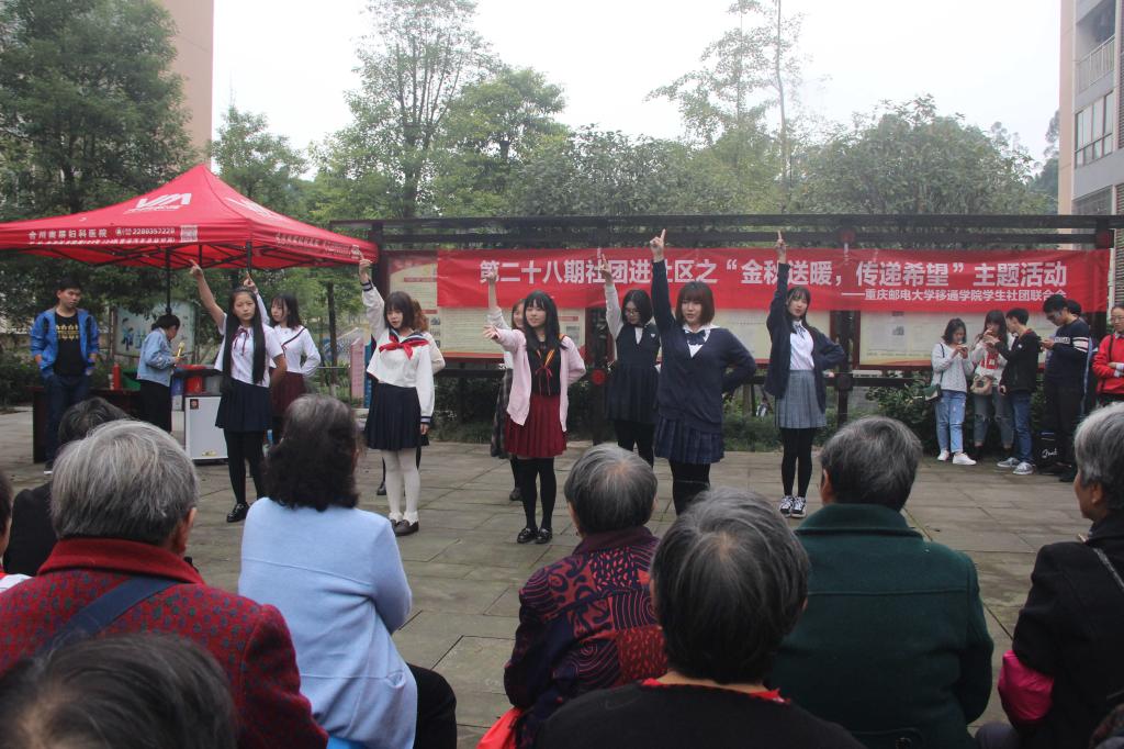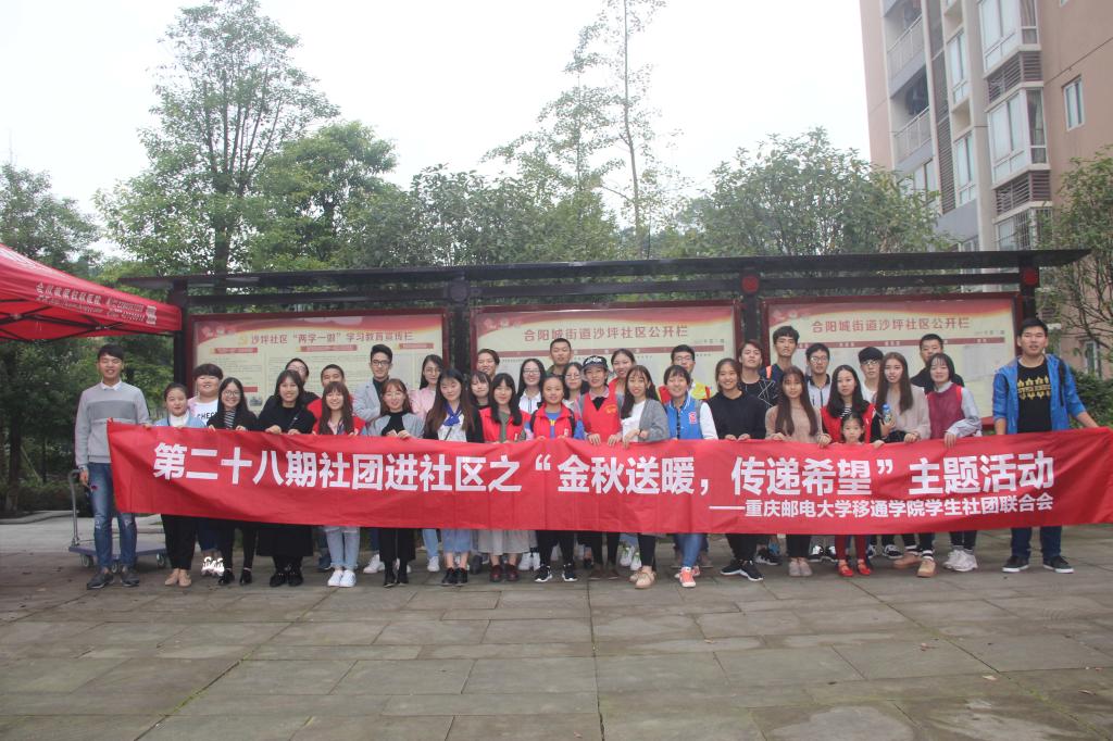 律动十月,唱响青春。在这个律动的日子里,移通学子,尽情释放青春,放飞希望。在爱心涌动的合川,带着一颗为他人服务的热心,学生社团联合会携手流行音乐社、华韵汉服协会、Free soul嘻哈社,以及动漫社的社员们齐聚沙坪社区,用双手传递一个爱的能量。大爱社区,情满社团,予人玫瑰,手留余香。