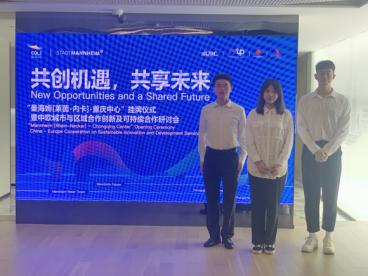 5月21日,“曼海姆(莱茵-内卡)-重庆中心”挂牌仪式暨中欧城市与区域创新及可持续合作研讨会在重庆两江新区隆重召开,中德连线同时为中心挂牌,进一步推动了两地在政府交流、产业合作、科创以及体育、文化、教育、旅游等方面的开放性合作。远景学院教师朱雪珂受邀参加此次会议,为了拓宽学生国际化视野,提升同学们的沟通与表达能力、国际会议服务能力和意识,通过与主办方沟通,远景学院三位同学也获得机会参与此次活动,并担任会议志愿者。