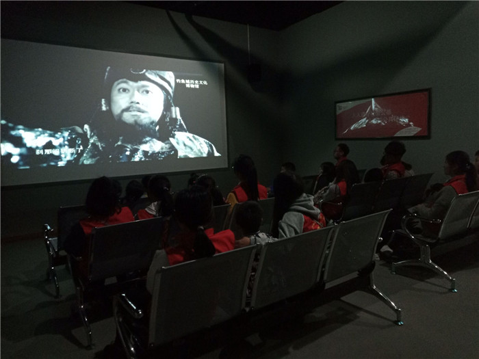 小朋友一张张稚嫩的脸庞上挂满了喜悦,那一双双眼睛里写满了好奇。走进博物馆,小朋友的目光便被馆内高大的人物塑像、精美的图画所吸引。然而讲解员有趣的开场白将小朋友的目光迅速转移到博物馆的主题“鱼城雄魂”四个大字上,博物馆参观之旅也由此拉开序幕。讲解员带领小朋友走到“钓鱼城遗址模型”板块,立体的结构仿佛把南宋时期的钓鱼城栩栩如生地呈现眼前。讲解员高低起伏的语调讲述着南宋、蒙古的主要人物,用浅显的语言描绘着钓鱼城之战的纷乱。小朋友全神贯注地听着讲解员的讲解,而讲解员也不忘与小朋友互动,让他们在轻松愉悦的氛围下慢慢去了解历史、了解钓鱼城。走到一楼演播厅时,讲解员带领小朋友认真观看着钓鱼城纪录片。