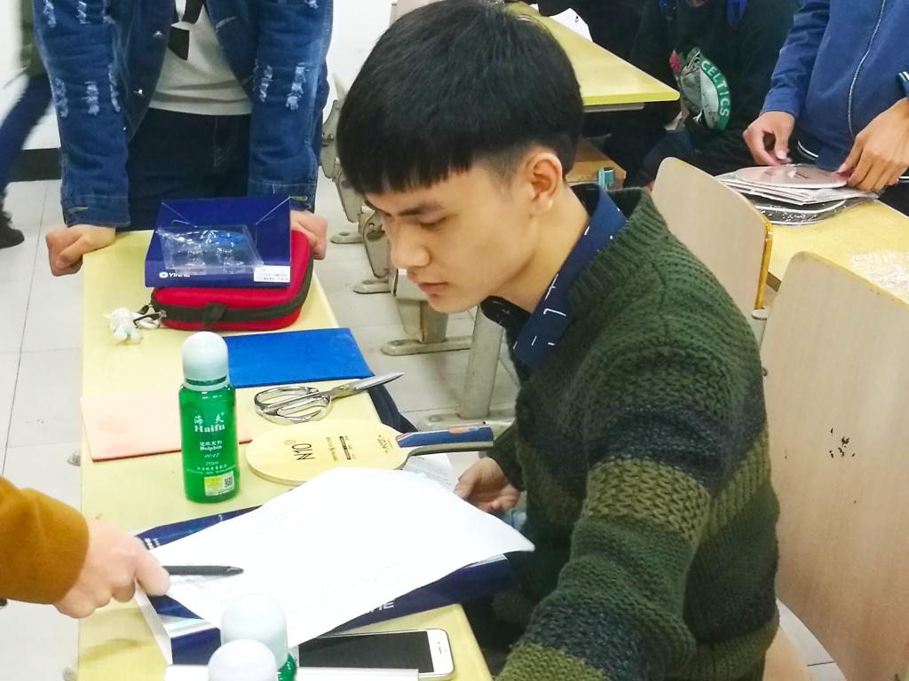 “光说不练假把式”,有效的动手练习能锻炼社员们的实战能力!活动开始前,大家先各自领取球拍板与胶皮,并通过学长们的现场演示与讲解,尝试着粘黏组装球拍。活动中,社员们参与积极性极高,许多从前分不清球拍正反面的同学,通过自己亲手组装粘黏,受益匪浅,学到了许多技巧。当遇到问题时,积极求解,甚至围在学长们身边,一边听着注意事项,一边动手亲自操作。此刻,社员们迈出了通向成功之路的第一步,希望大家带着这份认真与勤奋的态度,面对今后更险峻的挑战!
