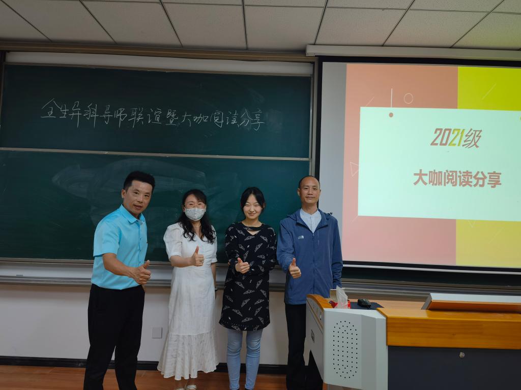创意写作学院(綦江校区)王恒绩、萧婷婷、段瑶、郭明以及刘明五位老师在5月20日将所带的异科导师班集中到仁者楼409教室,采用线上线下结合的形式,对5月份开展的信息产业大咖传记阅读工作进行了一次“检阅”。活动上半场听取了各异科导师五月份带领学生开展大咖阅读的情况汇报,就6月的阅读工作提出了思路,做了部署。下半场,创意写作学院组织异科导师和同学们就如何开展好大咖阅读工作做了经验分享。学生处(綦江校区)5月7日在綦河书院二号楼昭明·大咖阅读室开展了信息产业大咖传记阅读分享会,学生处教师和学生助理轮流发言,讨论热烈。本次分享会由刘倚函老师主持。分享会通过读书心得分享、现场交流讨论等展示了大家的学习成果,老师和同学们按照会前有序发言,依次分享自己的心得。