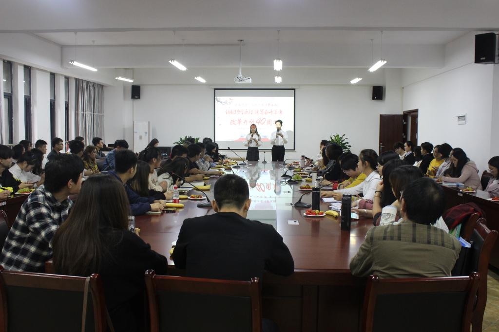为深入贯彻落实习近平新时代中国特色社会主义思想和党的十九大精神,忆改革开放40周年。10月17日下午4点,思政教学部在艺术楼101会议室举行“讴歌辉煌历程,续写奋斗篇章--纪念改革开放40周年” “青春思索”主题沙龙(第五期),思政教学部邓燕主任携教学部全体教师以及各学院16、17级学生代表参加。