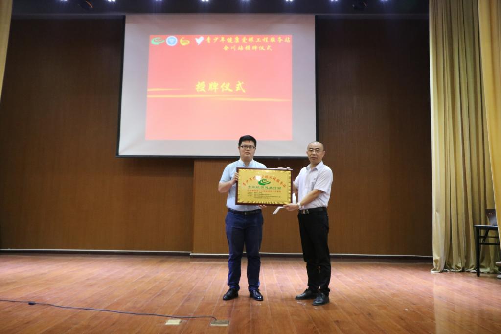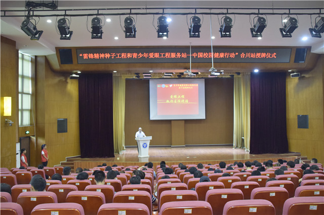 2017年5月26日上午,“中国校园健康行动——青少年爱眼工程服务站”西部首站合川站授牌仪式在我校下里巴人隆重举办。中国校园健康活动关爱生命健康教育工作办公室、中华雷锋爱心公益联盟代表爱眼工程执行主任潘建华、爱眼工程秘书长周贵荣等一行莅临指导工作,合川区青年创业协会会长朱金龙、重庆邮电大学移通学院团委志愿服务版块唐彬文老师、岳振远老师以及重庆工商职业学院、重庆人文科技学院、重庆邮电大学移通学院志愿者代表参与本次授牌仪式。