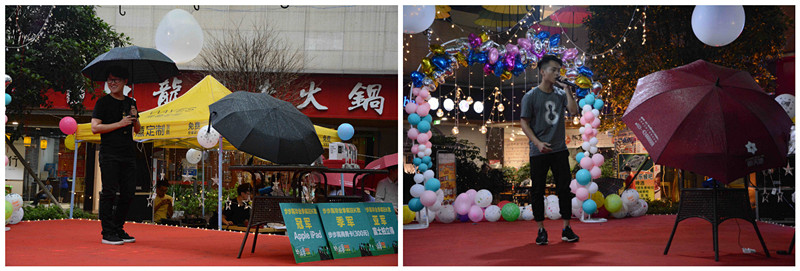 青春不老,岁月狂欢。一周前,我们用火热的狂热青春书写“乌龟慢递”的深情、聆听“K歌打榜”的音律、追忆纯真趣味的童年!拒做“90后空巢老人”,让每一个人都体会到青春的激情与活力。一周后,热情之火永不停息,在5·20这个“爱情日”里,由学生社团联合会外联部主办的岁月狂欢分场在步步高会场顺利举行!虽然天宫不作美,但狂欢的好像丝毫没有减弱呢,快跟随他们的脚步,来一场热情似火、青春洋溢的浪漫之旅吧!