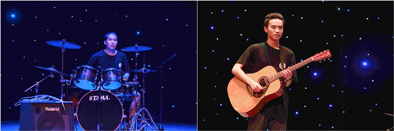 一阵优美的钢琴声传来,灯光下,钢琴社社长李子婕双手抚琴轻弹着《flower dance》,黑白的琴键的交替变换,让我们仿佛置身于花朵的海洋,飘舞的花瓣飞过指尖,流转,荡漾,留在了每个人的心房。与其安静的鲜明对比是瓦蓝乐队和逆乐队。民谣,摇滚,如同一股热火直面一汪清泉,又好似陷入了热恋,在感性与理性之间来回挣扎,让人欲罢不能。而《东京喰种》在《千本樱》下轻声的哼着《卡农》,在小提琴的悠扬音律中,让我们暂且恢复理智,那最后小结中的和弦好似在楠楠耳语般诉说着永不分离的情愫。