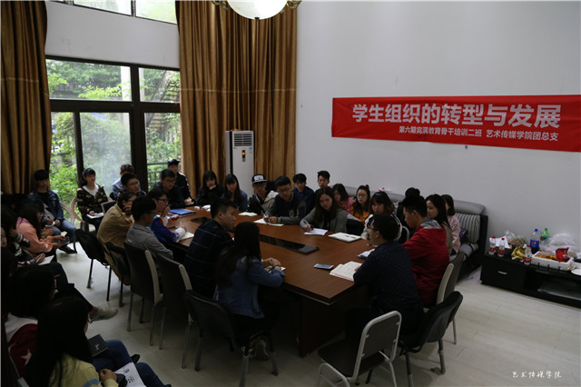 2017年5月5日-5月6日,第六期完满教育骨干培训二班学员与艺术传媒学院学生骨干共计师生37人齐聚半山会所,展开院系与校级学生组织之间,院系与院系学生组织,以及校院(系)学生骨干与基层班团学生干部的联合交流。通过围绕学生组织如何转型;转型后的工作开展方向和组织定位;学生组织的制度、文化建设以及如何提高部门工作能力、凝聚力建设;如何激发基层班团活力,发挥班团在完满教育工作中的重要作用等主题展开小组讨论。