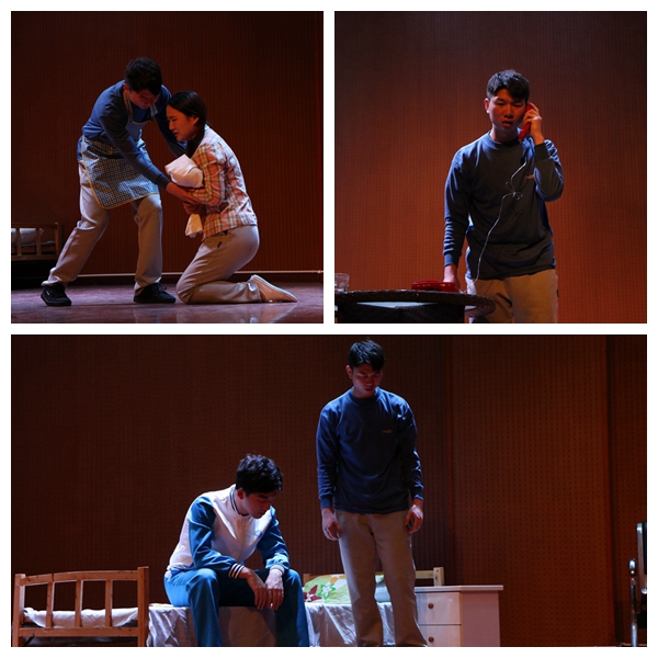 表演即将拉开帷幕,主持人颜伟学长以其丰富的舞台经验表达了短剧《日记》的主题思想——父爱如山。《日记》讲述了母亲于梅因一时犯错生下了儿子卓生,并交于哥哥于信抚养,长大后得知这个真相的卓生又查出患有白血病,阴差阳错找到于梅时于信突发车祸去世这样一个故事。话剧的每一幕都牵引着观众的心,都说父爱如山,剧中父亲的扮演者将父爱表现的细致到位。我想台下的观众们同小编一样感受到亲人的爱是无私的,永恒的。父爱如山,传递温情和感动。此次校园戏剧节增进了同学们之间的友谊,也将艺术带到了同学们身边,他们无与伦比的灵活思维和独特的表现形式必能为戏剧艺术注入新的血液,带来新的活力。