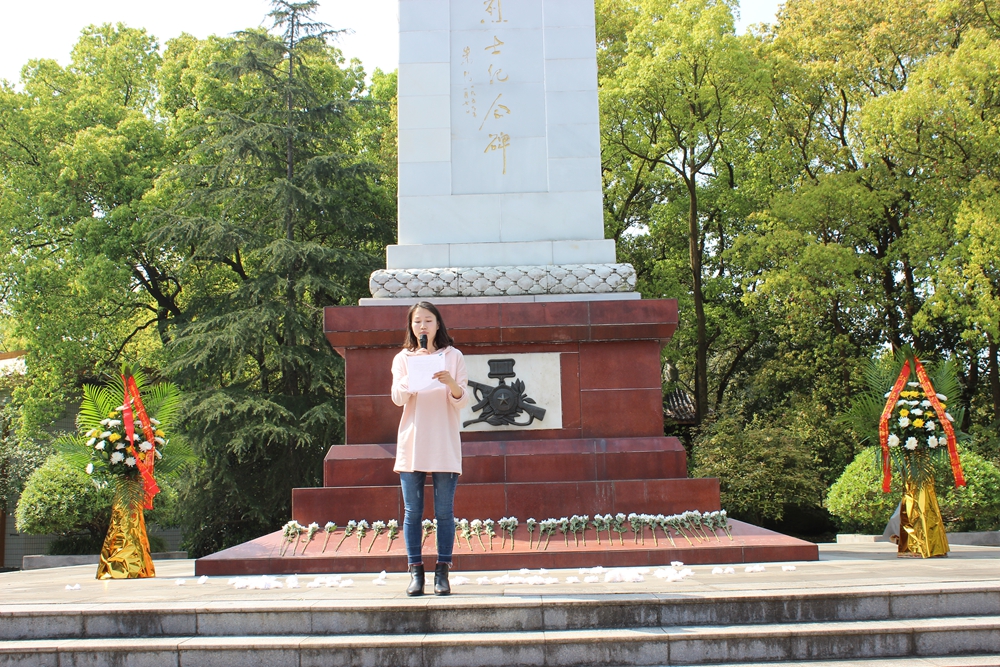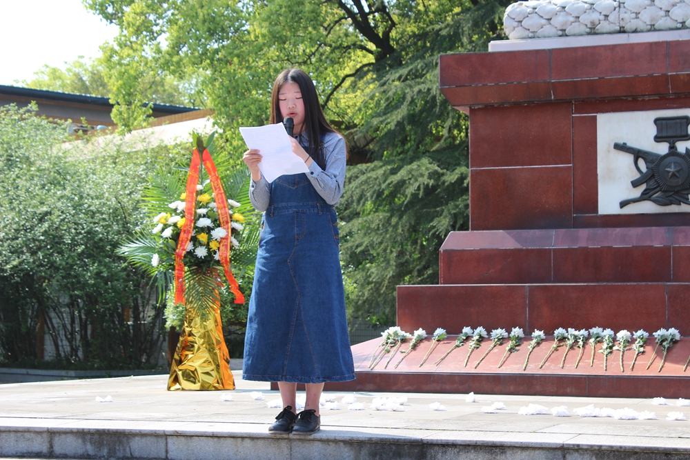 学生代表向烈士献词,表达了对烈士的崇高敬意,也表达了作为当代青年学生的坚定决心:“继承先烈革命传统,发扬前辈爱国精神,为实现中国民族的伟大复兴而奋勇拼搏。”