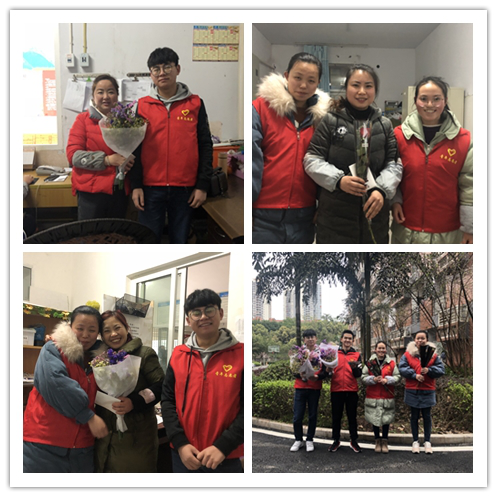学会感恩身边的人,在三月八号妇女节的这一天,青年志愿者协会的小可爱们,他们一起为宿管阿姨们送去一束束美丽的玫瑰花,留下的是她们开心的笑容。为妈妈们送上一张盛满祝福的卡片、一句饱含思念的话语、 一束清香的康乃馨、一声深情的呼唤,满载着我们对母亲的感激。为伟大的祖国母亲送去祝福,祝福亲爱的中华母亲,变得更美丽,建设得更强大。