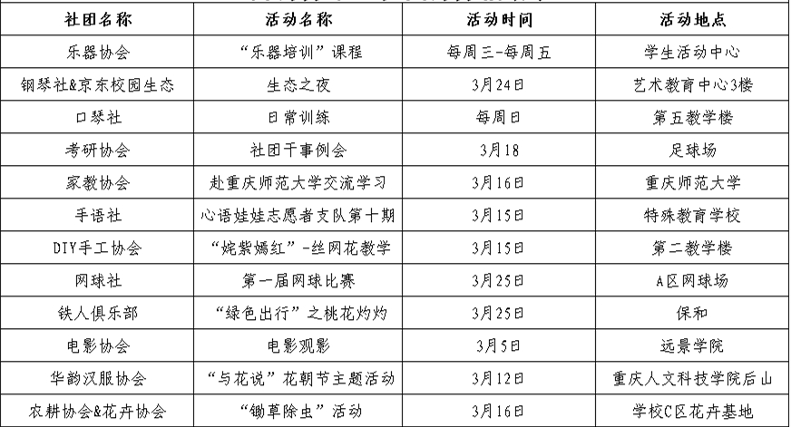 一年之计在于春,春是一年的开始。三月以来,学生社团陆续“发声”、“唱响”社团活动的高歌,春风拂面,万花齐放,让我们一起看一看三月份部分学生社团的代表性活动吧!